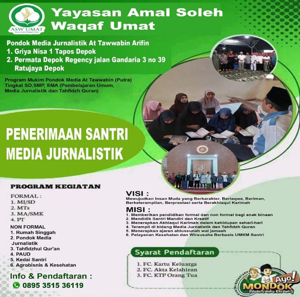 Yayasan Amal Soleh Waqaf Umat Depok didirikan pada Hari Santri, 22 Oktober 2022, dan berkedudukan di Depok dengan cakupan nasional. Yayasan ini bergerak di bidang pendidikan (SD hingga S3, dalam & luar negeri), jejaring UMKM, bursa kerja global (Eropa, Asia, Amerika, Timur Tengah), kesehatan (khitanan massal & layanan umum), serta pembiayaan UMKM melalui Koperasi Indonesia Migran Centre. Selain itu, yayasan juga membina yatim, fakir miskin, muallaf, dan penyandang kebutuhan khusus.